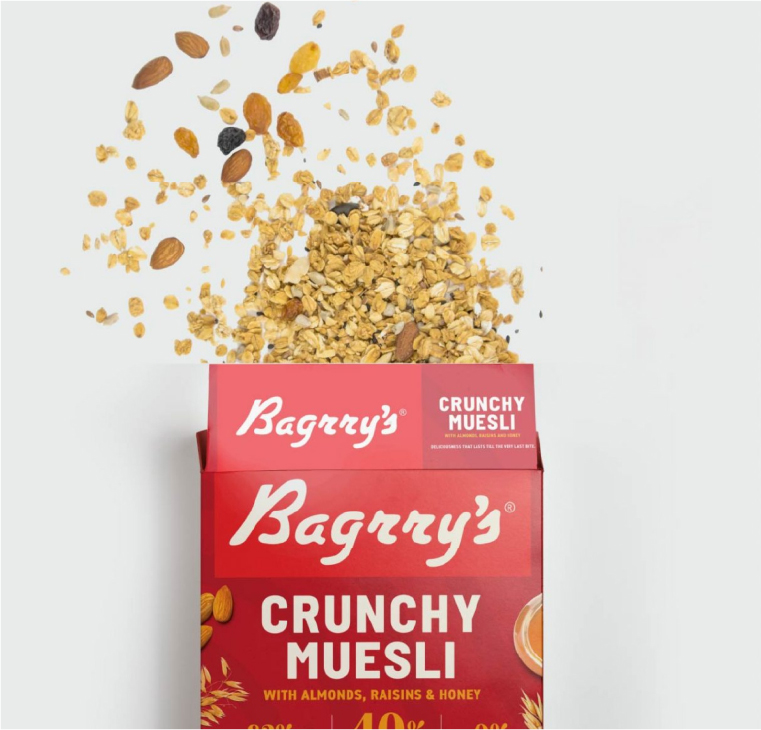 The red flag of the logo, the abundance of ingredients and prominence of the product were modernised to remain part of the brand’s narrative. For the muesli range refresh, we introduced a burst of colour to the Bagrry’s product family and built a strong differentiator between flavour variants. We highlighted the health benefits and kept the communication informative but easy to consume, with a splash of infographics and iconography on the back of the pack.